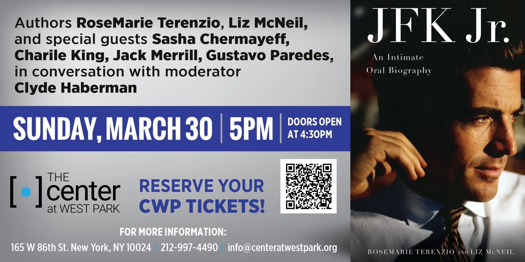 JFK Jr. : An Intimate Oral Biograph Sunday, March 30, 2025 5:00 PM 7:00 PM 17:00 19:00 The Center at West Park, Inc. 165 West 86th Street New York, NY, 10024 United States (map) Google Calendar ICS Reserve Tickets