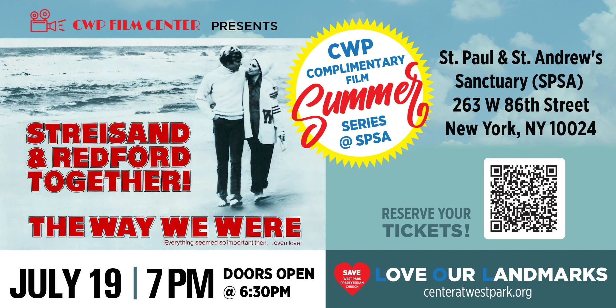 The CWP Film Center presents a complimentary screening of The Way We Were, starring Barbra Streisand and Robert Redford.
