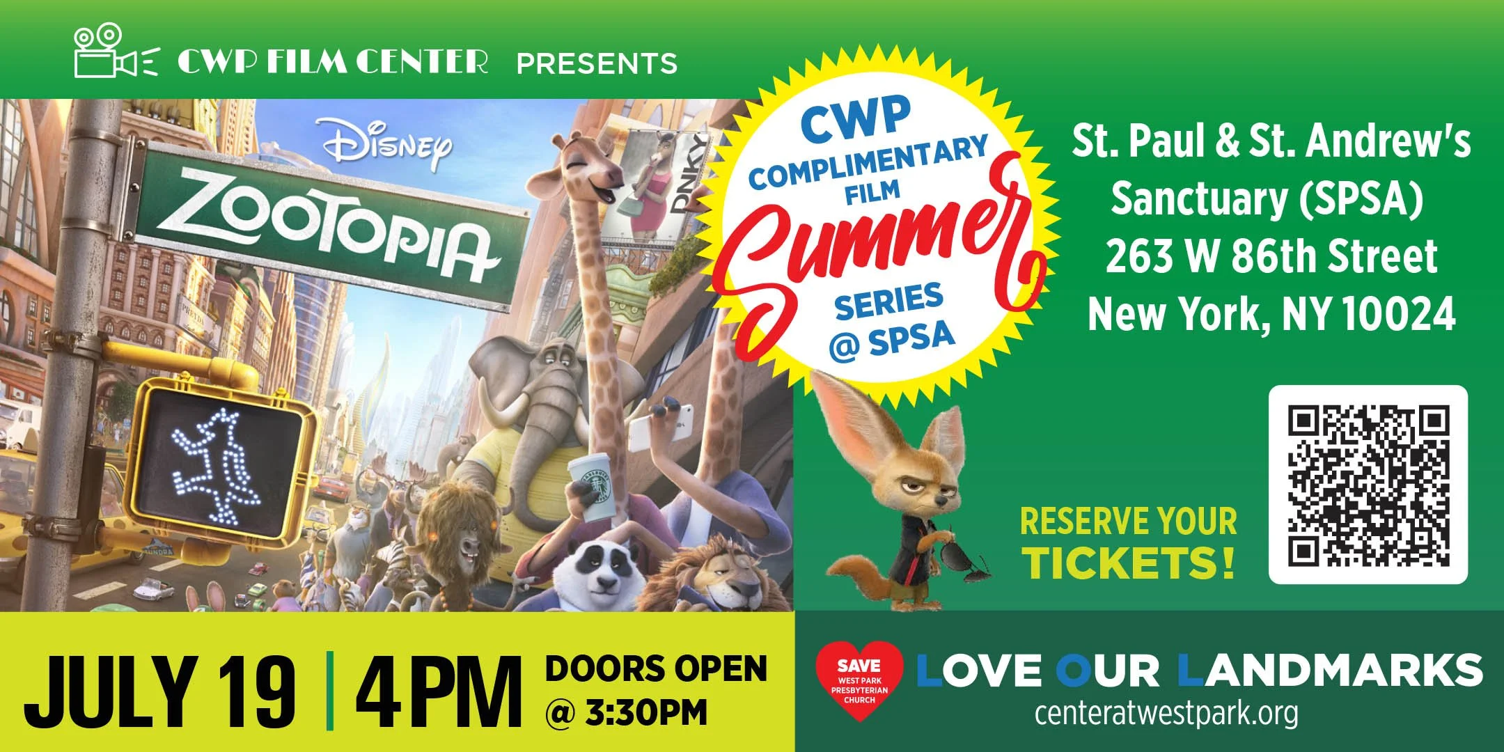 The CWP Film Center presents a complimentary screening of Zootopia, starring Ginnifer Goodwin and Jason Bateman.