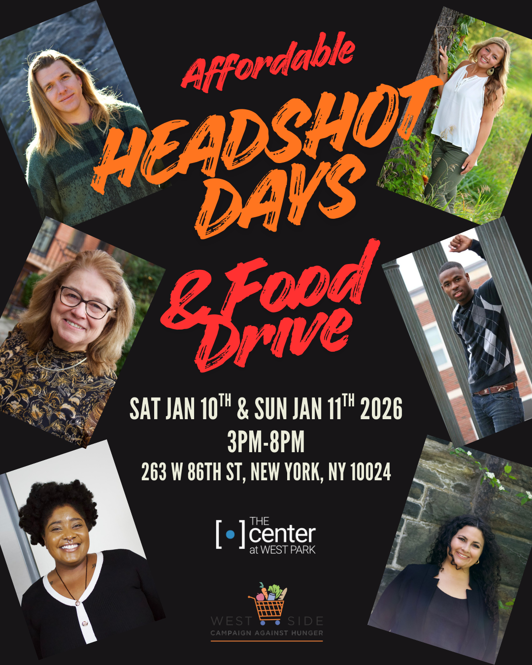 CWP Photographer Jen Leno is offering affordable, professionally photographed and edited headshots for artists and community members! Non-perishable food donations are encouraged in support of the West Side Campaign Against Hunger.