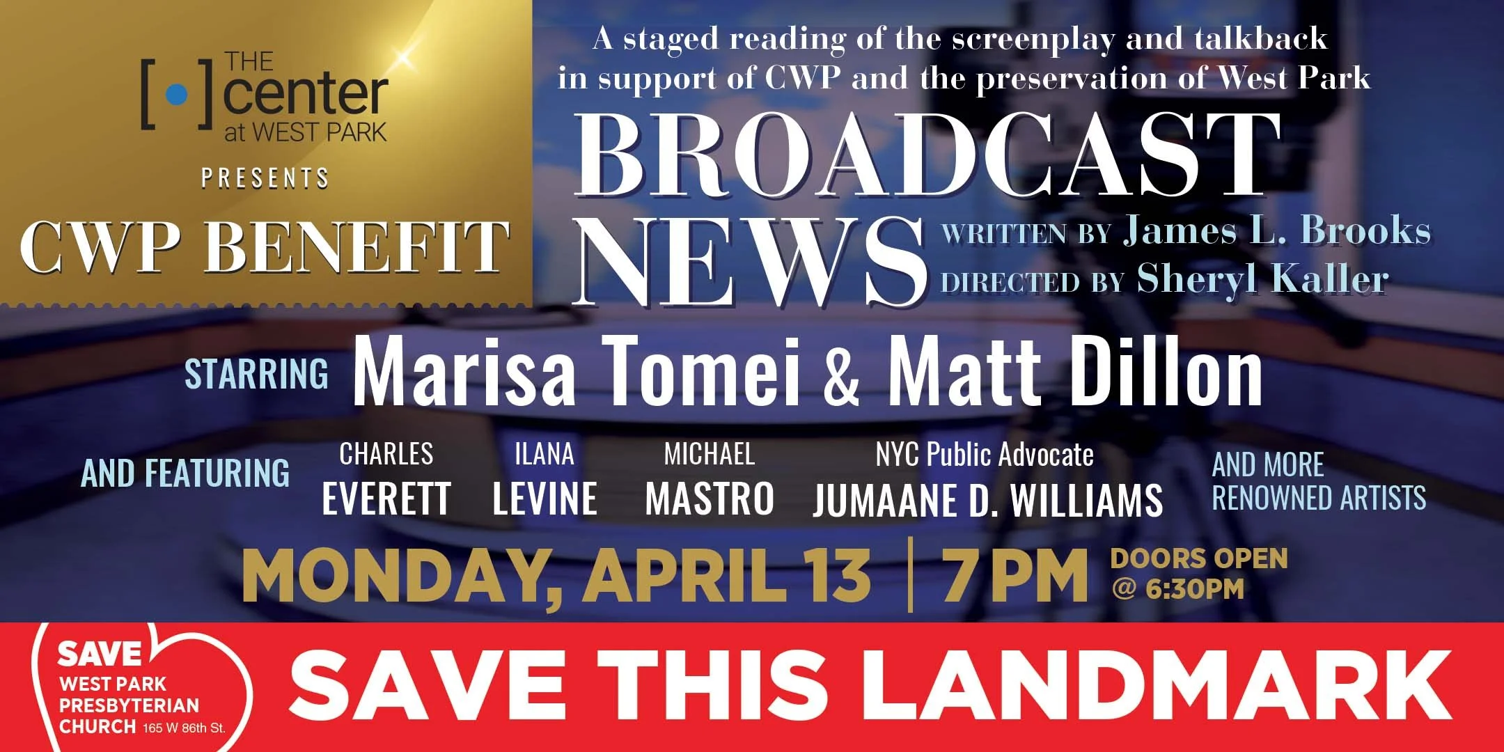 A staged reading benefit of the screenplay of Broadcast News, starring Marissa Tomei and other renowned artists!
