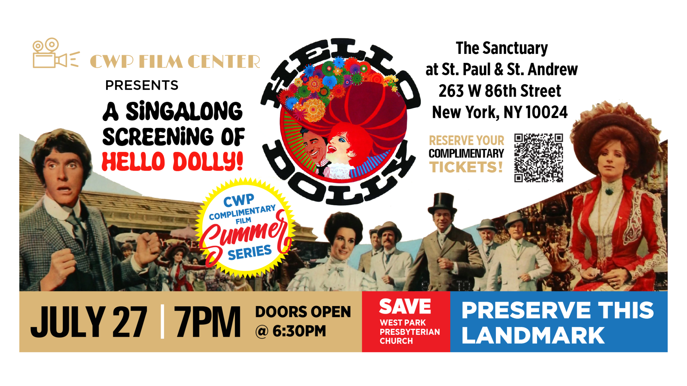 The CWP Film center presents a complimentary sing-along screening of Hello Dolly, starring Barbra Streisand, and Walter Matthau.