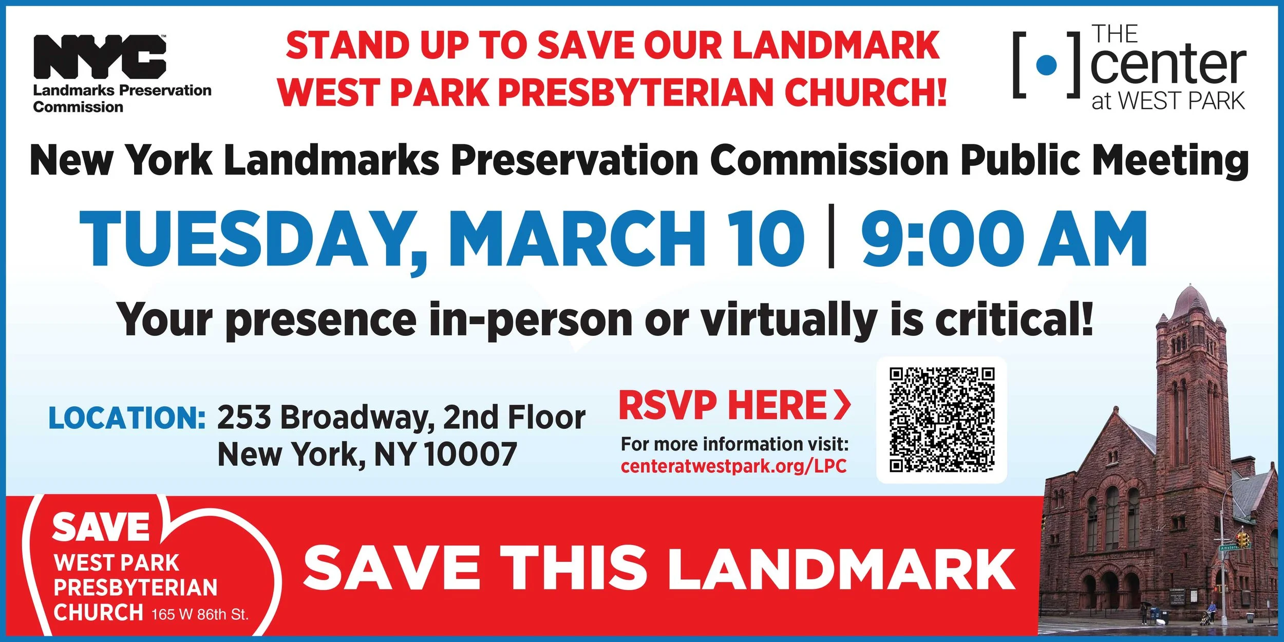 STAND UP FOR OUR LANDMARK WEST PARK PRESBYTERIAN CHURCH ON 3/10 At the Landmarks preservation commission public MEETING!