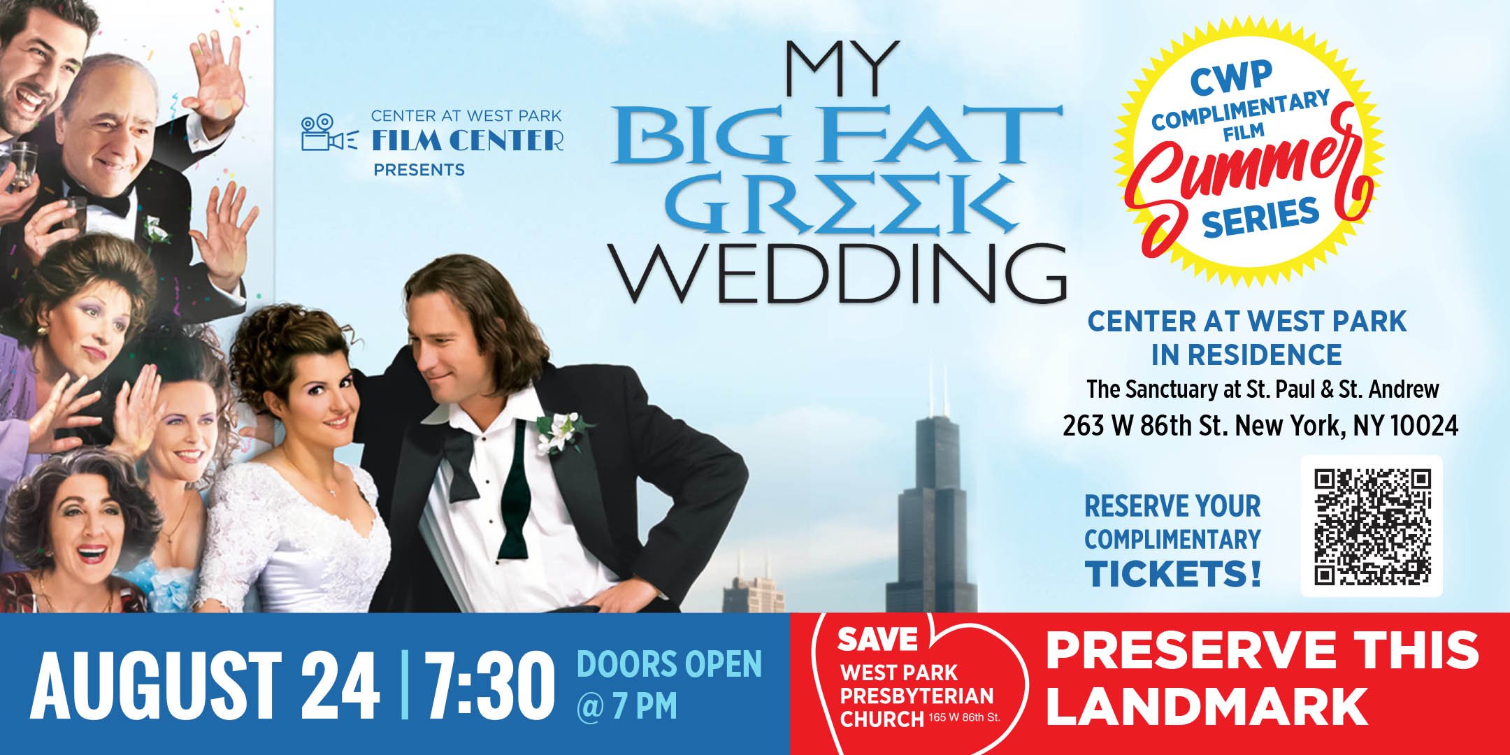 The CWP Film center presents a complimentary screening of My Big Fat Greek Wedding, starring Laine Kazan, Andrea Martin and many more!