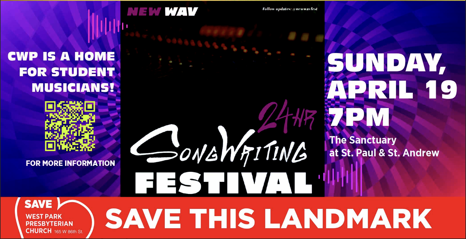 Through this partnership with local student song writers from NYU, CWP is proud to foster a space for students and community members to showcase their talents and hard work on the big screen.