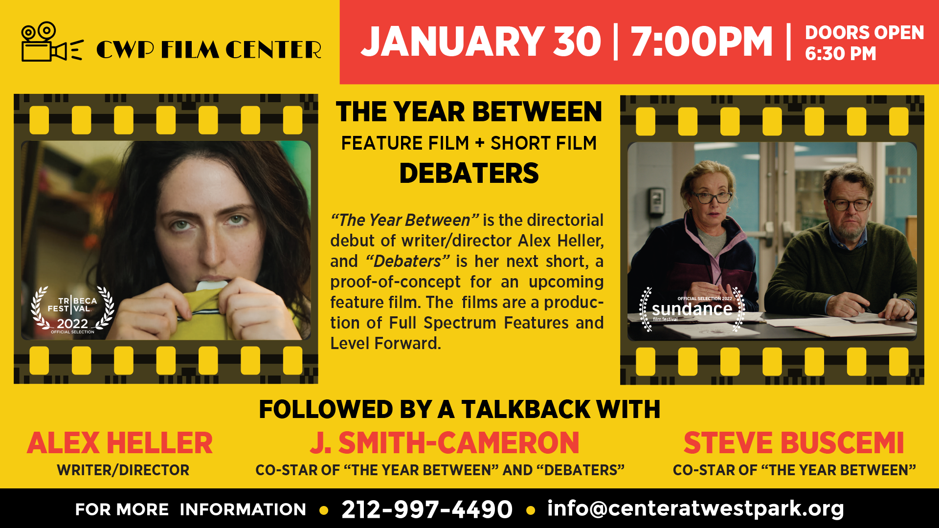 Followed by a talkback with writer/director Alex Heller, as well as J. Smith-Cameron (co-star of The Year Between and Debaters, and Steve Buscemi (co-star of The Year Between).
