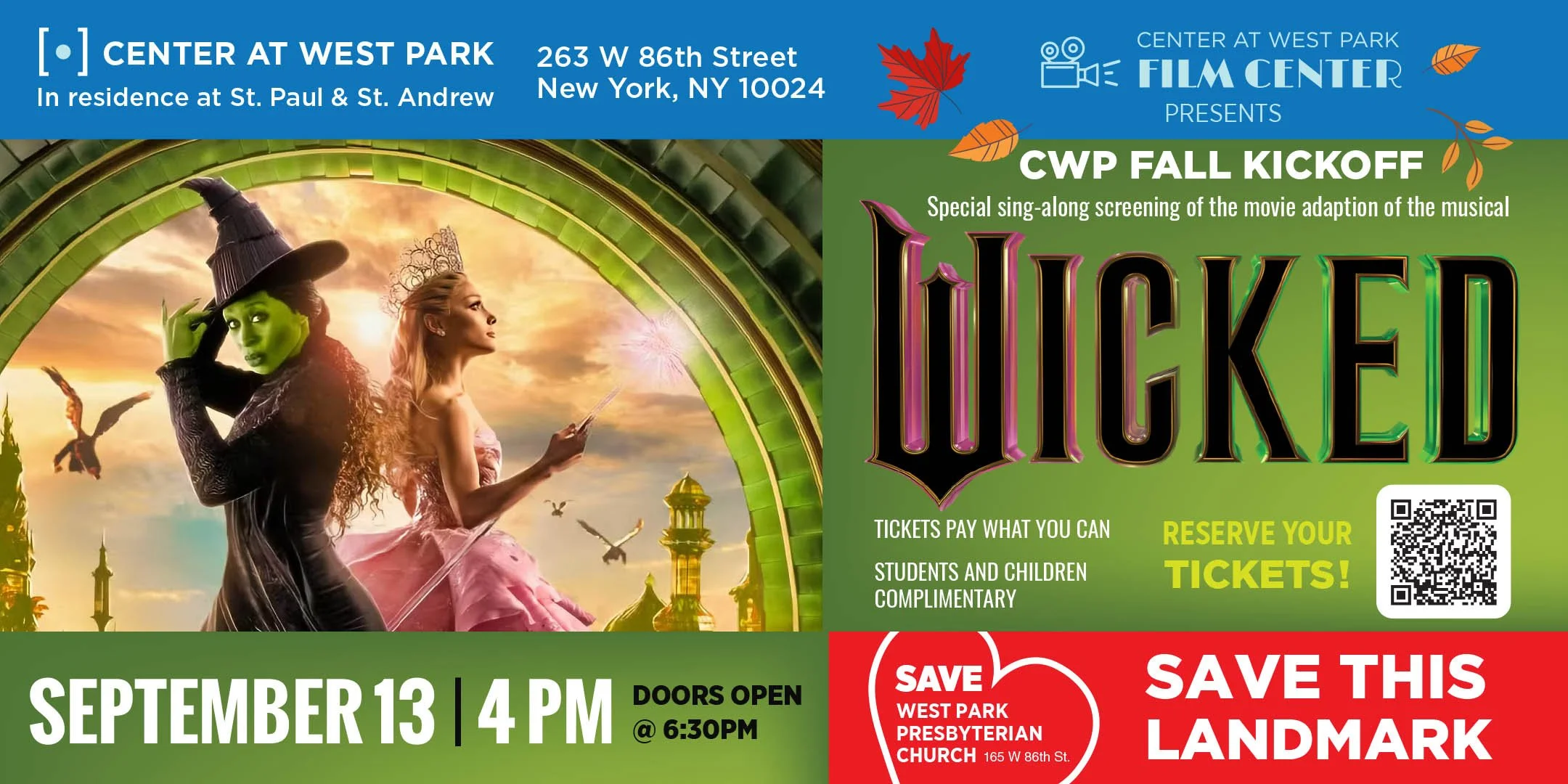Join us September 13th at 4:00 PM for CWP’s special sing-along screening of the movie adaption of the musical “Wicked”.